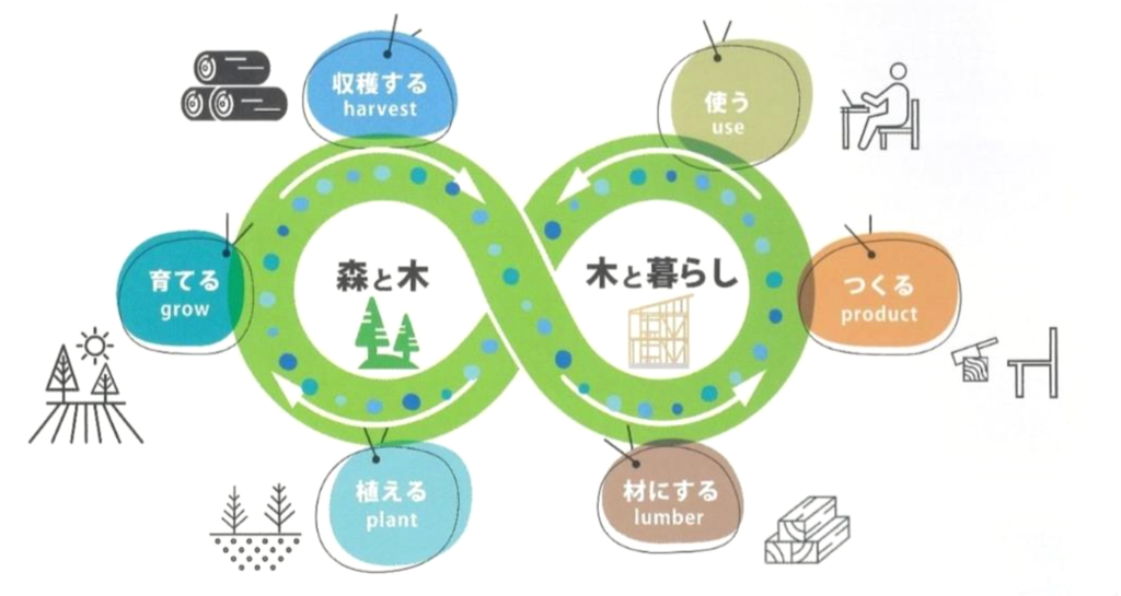 本県では伐採後の再造林にも力を入れており、伐採面積の80%以上の再造林を目標に、持続可能な林業の実現を目指しています。地域の森は、豊かな水と空気を育み、環境保全にも大きな役割を果たします。さらに地元の木を活用した建築の取組みは、地域循環型社会への貢献につながります。