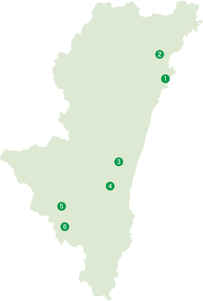 豊かな太陽と水、黒々とした土に育まれた宮崎の森林は、江戸時代からマツやモミ、ヒノキやクスノキなど、奈良の東大寺や江戸城といった歴史的建造物に使用された材を提供してきました。