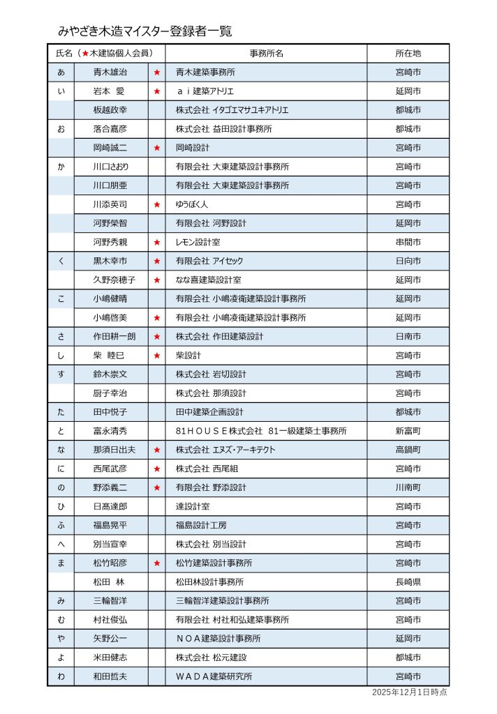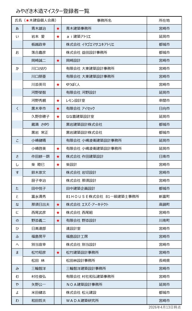 「みやざき木造マイスター」の詳細については、宮崎県庁HPによりご確認ください。